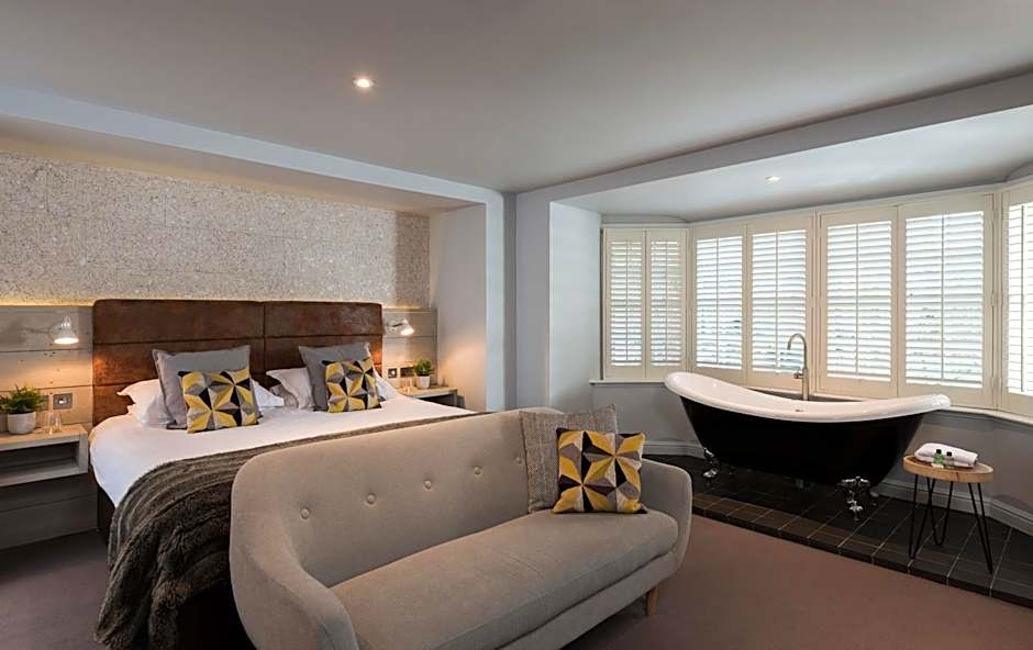Spacious one-bedroom suite featuring a large bay window and decorated in a Scandinavian style. The room offers a king size bed, an en-suite wet room with monsoon shower, a roll top bath, mini bar and tea/coffee making facilities.
